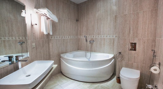 Ванная комната: душевая кабина или ванная (по желанию), фен, комплект косметических средств.